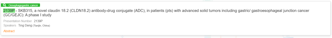 在今年10月的ESMO大会上,科伦博泰首次公布CLDN18.2 ADC药物SKB315的1期临床数据——该研究针对经标准治疗失败的晚期实体瘤(包括GC/GEJC)患者,初步结果惊艳。