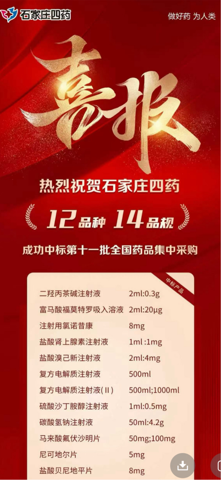 $科伦药业(SZ002422)$ 恭喜科伦深入投资的石四药中标12个品种