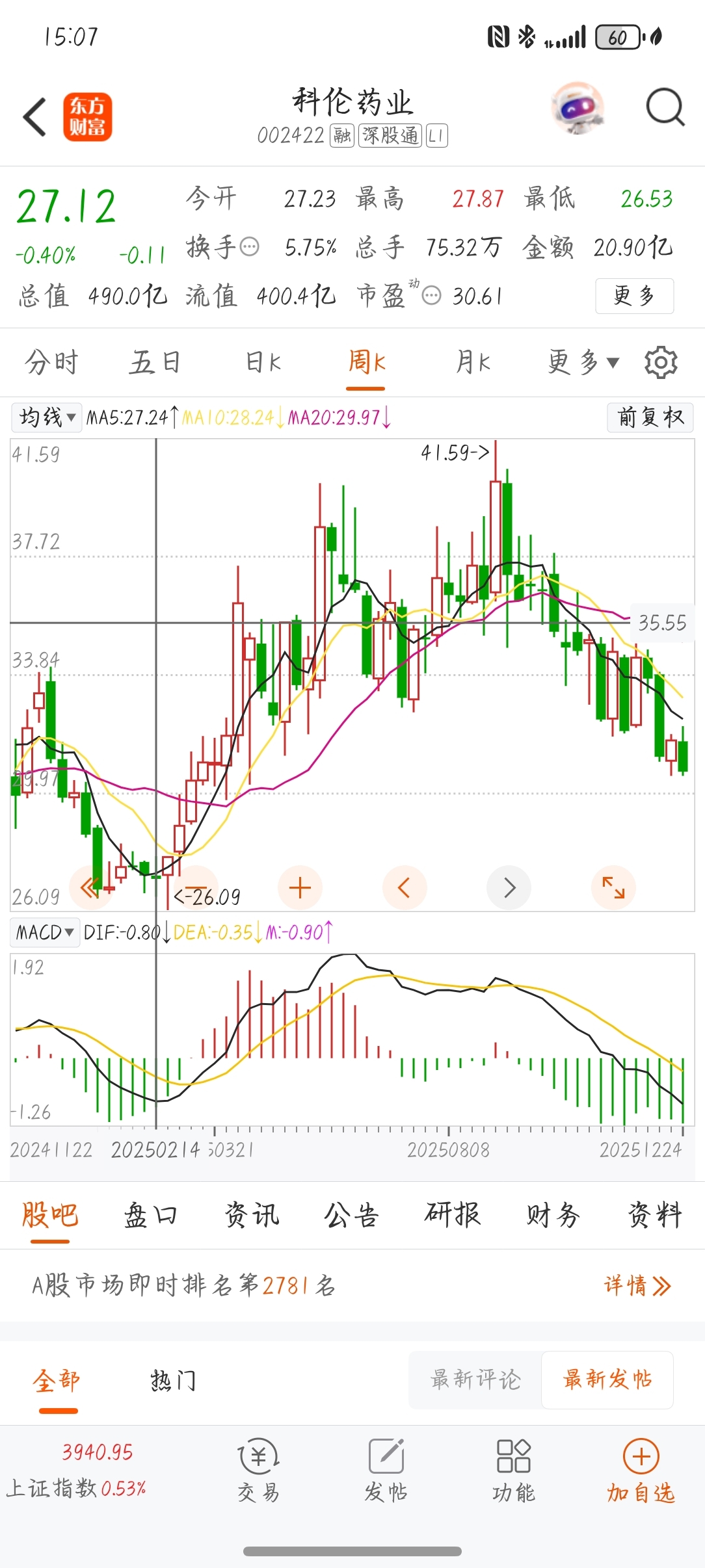 $科伦药业(SZ002422)$ 啥时候才能跌回年初的27啊?好期待哦。