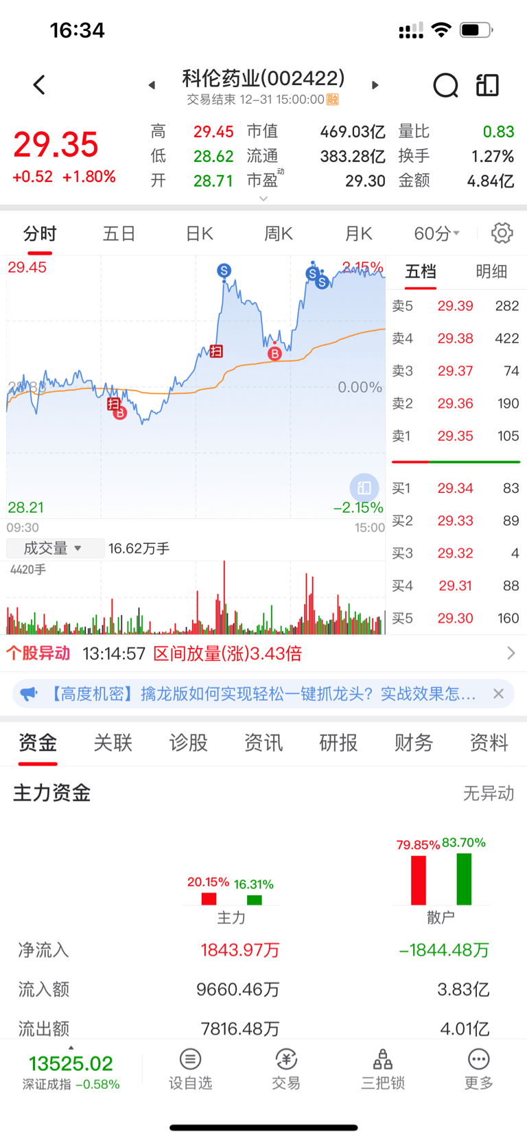 $科伦药业(SZ002422)$ 一天回本留半仓,周一回踩一半是上车机会。无量上涨就拿稳,目前只能作为阶段反弹,年后应该快轮到创新药板块了,先看到20均压力位问题不算大。