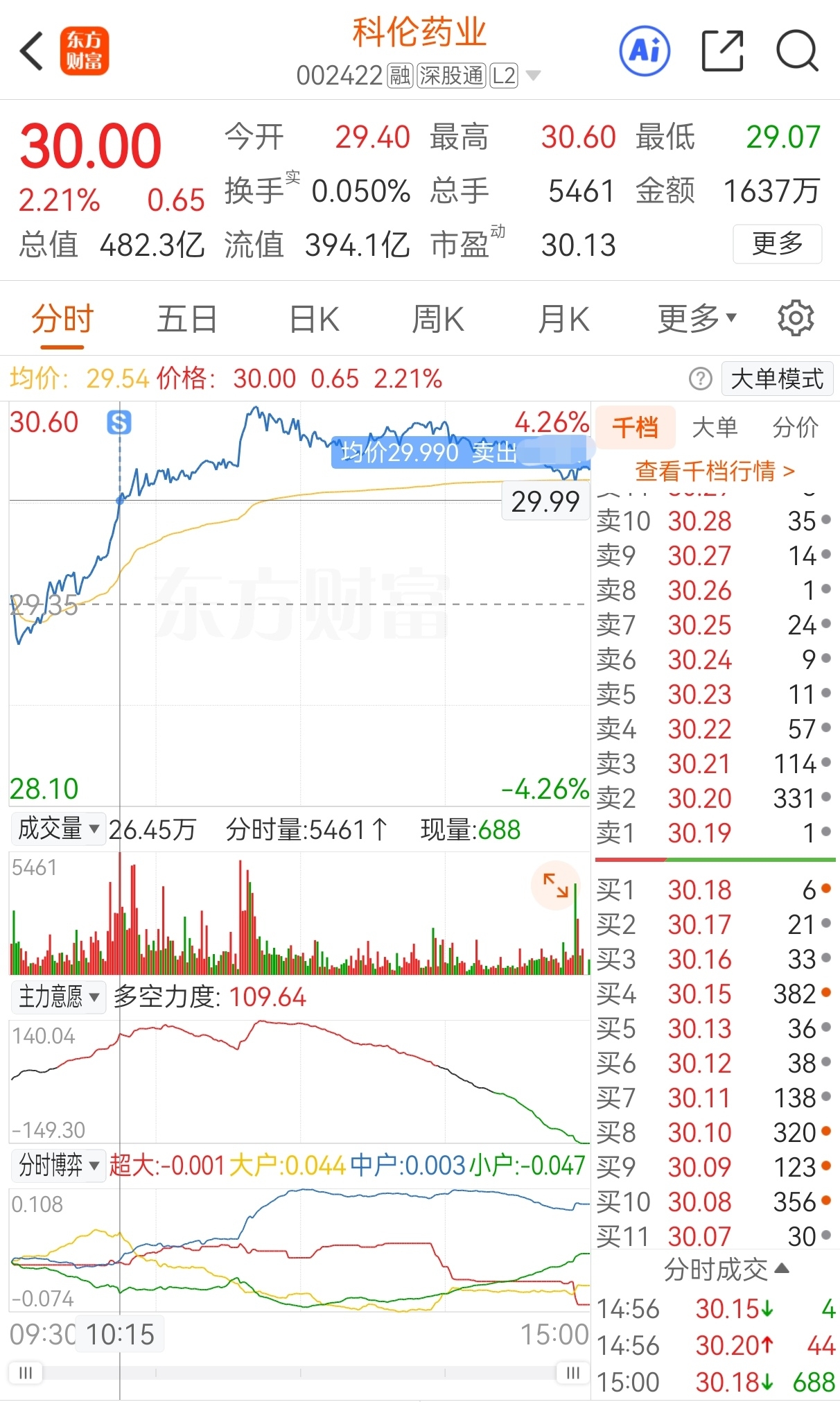 $科伦药业(SZ002422)$ 原计划今买明卖,实际29.28买,28.83加仓,29.99卖,实盘短线套利科伦药业,成功收米走人!