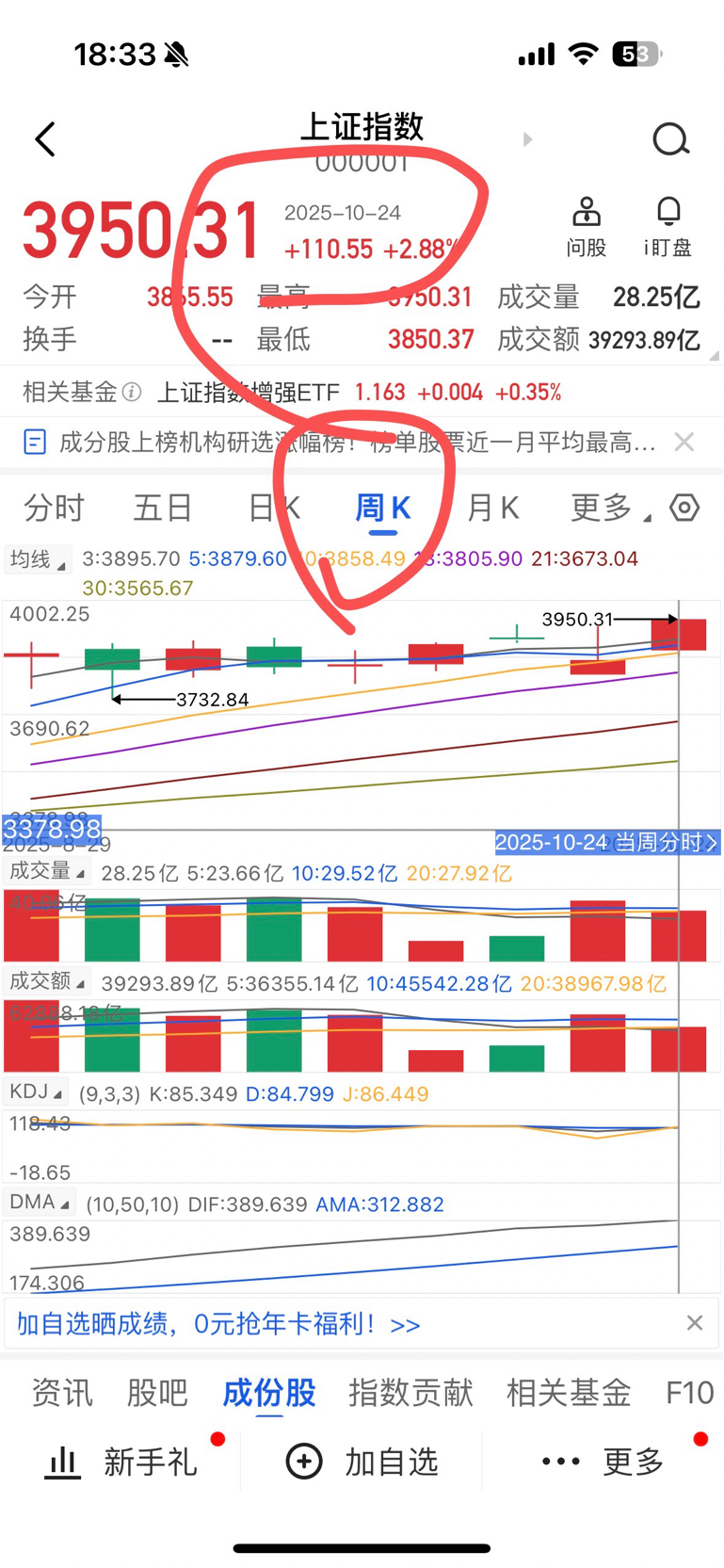 大盘一周涨了110个点数,你呢,还绿,你是懂keng股吧的股东的