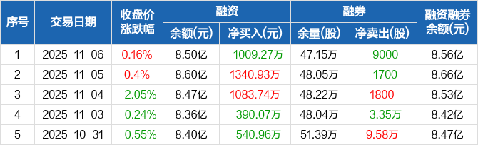 中粮资本:融资净偿还1009.27万元,融资余额8.5亿元(11-06)