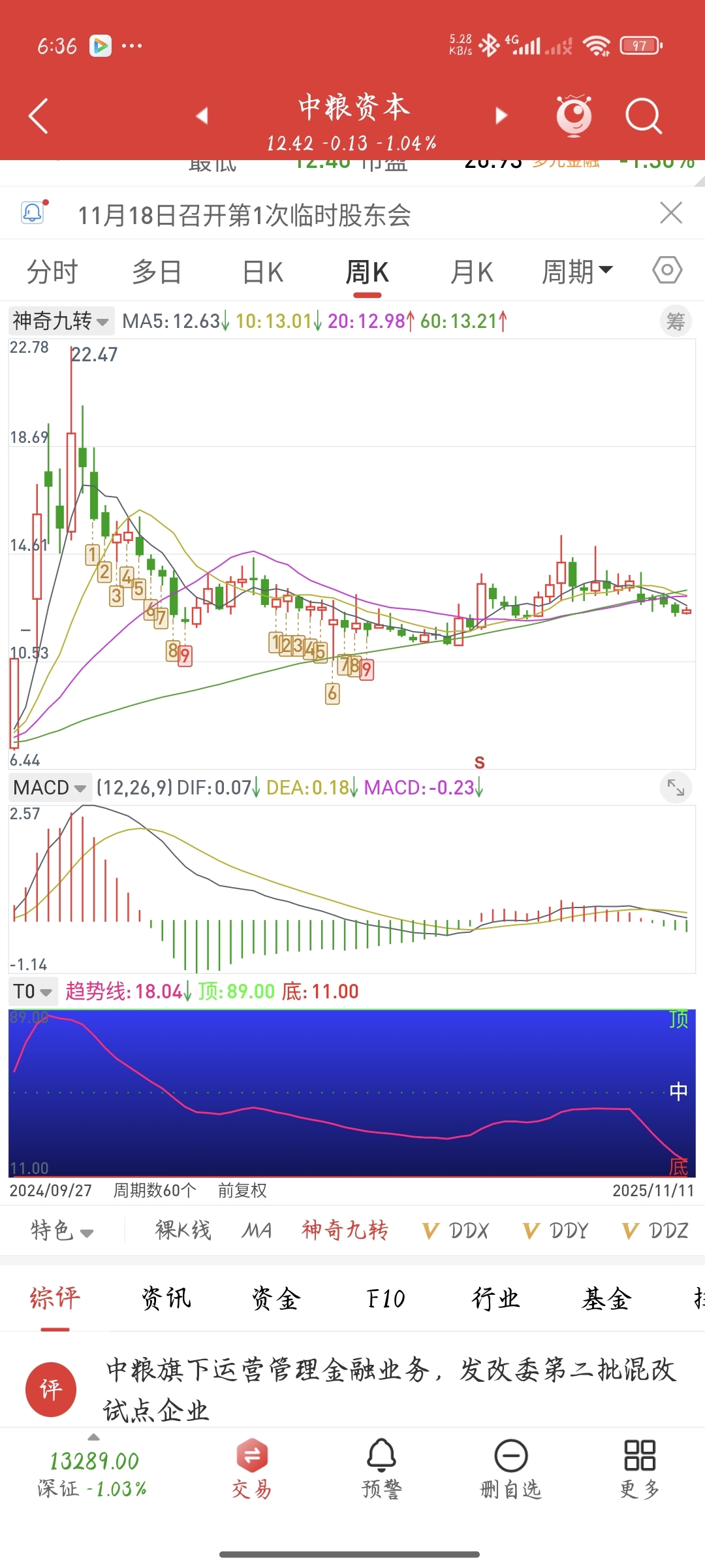 $中粮资本(SZ002423)$ 日周线基本都见底,准备有序加点仓位