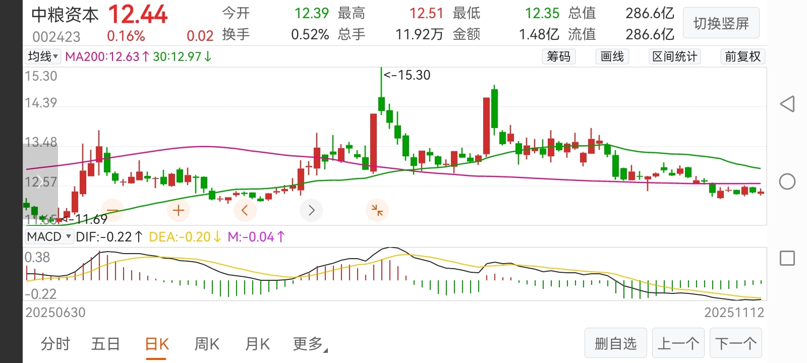 $中粮资本(SZ002423)$ 中粮奔向18历程第三天。最近五天的振幅控制在两个点内,并且今天量能再创新低,这就是磨底特征,磨走那些短线客,意志不坚定的人。反弹还会继续,短期内都没什么行情。我有都是耐心继续磨底,我预期是十五个交易日内完成。我认为200日均线下方都是阶段底,今天已经在线下第七天。筹码还在集中所以我一点不担心后面的行情。