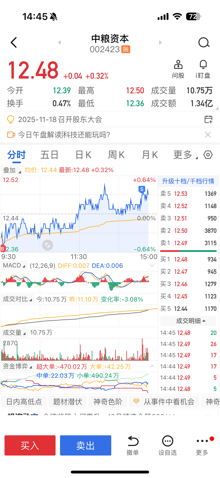 大盘真突破4025,可是粮子啊你没到12.6啊,只能先做t出去了