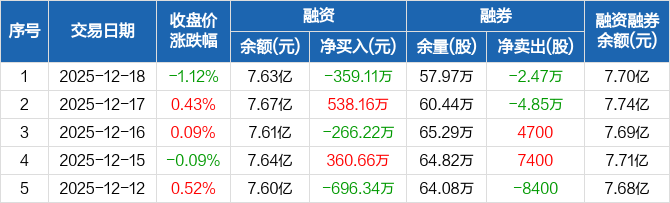 中粮资本:融资净偿还359.11万元,融资余额7.63亿元(12-18)