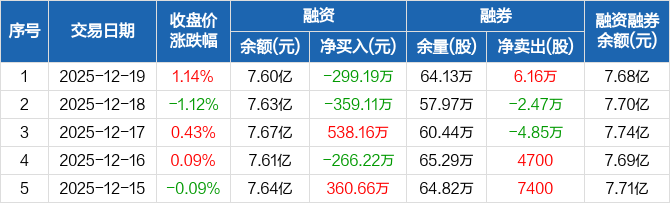 中粮资本:融资净偿还299.19万元,融资余额7.6亿元(12-19)