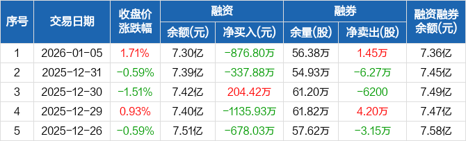 中粮资本:融资净偿还876.8万元,融资余额7.3亿元(01-05)