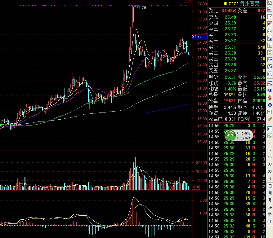 A:25.3元以下买过002424,可能是18元,17元,但刚涨一点儿就卖了,结果踏空了,心里极度不平衡,想002424再跌再买回来,因为25.30现价买还比他们卖得价格高,必须唱空好买!