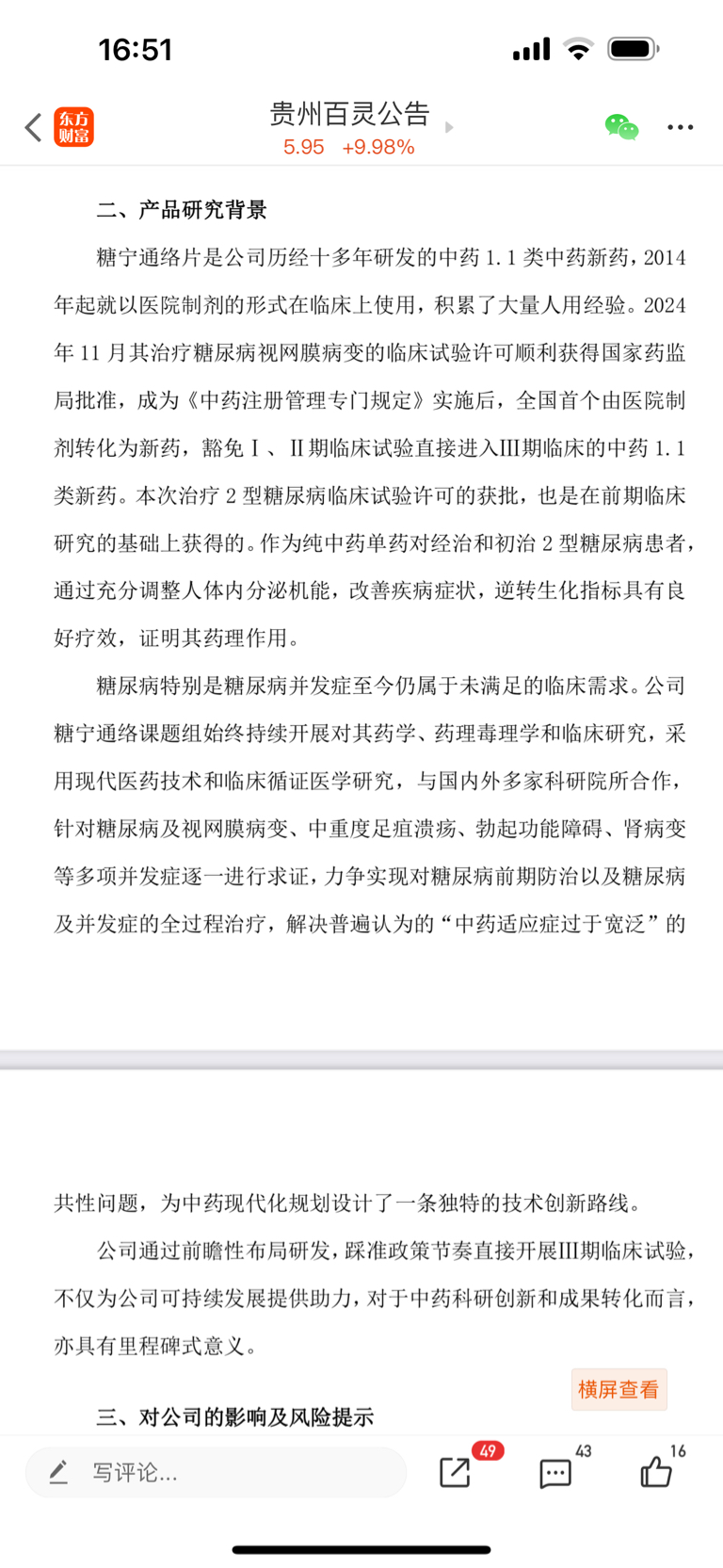 $贵州百灵(SZ002424)$ 万亿的市场,比广生堂更牛,第一目标19.9元,第一目标99元,一二临床直接豁免的医疗用药,比广生堂的更牛掰啊