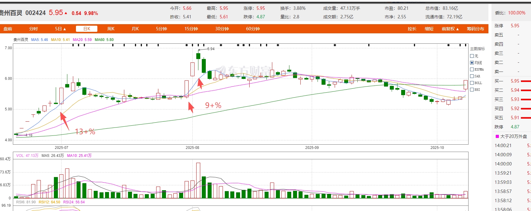 $贵州百灵(SZ002424)$ 换手率>10% 、 ≈ 10%、 < 5% ,得出什么结论,欢迎评论。