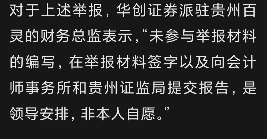 华创自己委派的财务总监反水了啊!看来立案调查迫使内部分化瓦解了。举报材料“非本人