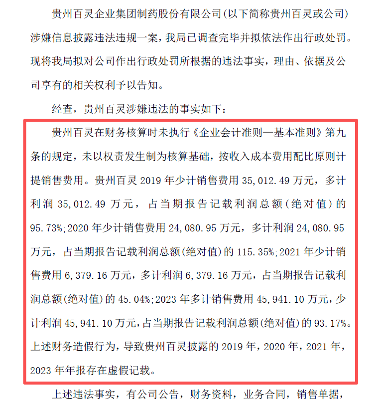 贵州百灵索赔登记。四年年度报告存在虚假记载,少计销售费用虚增利润被预处罚,摘帽不