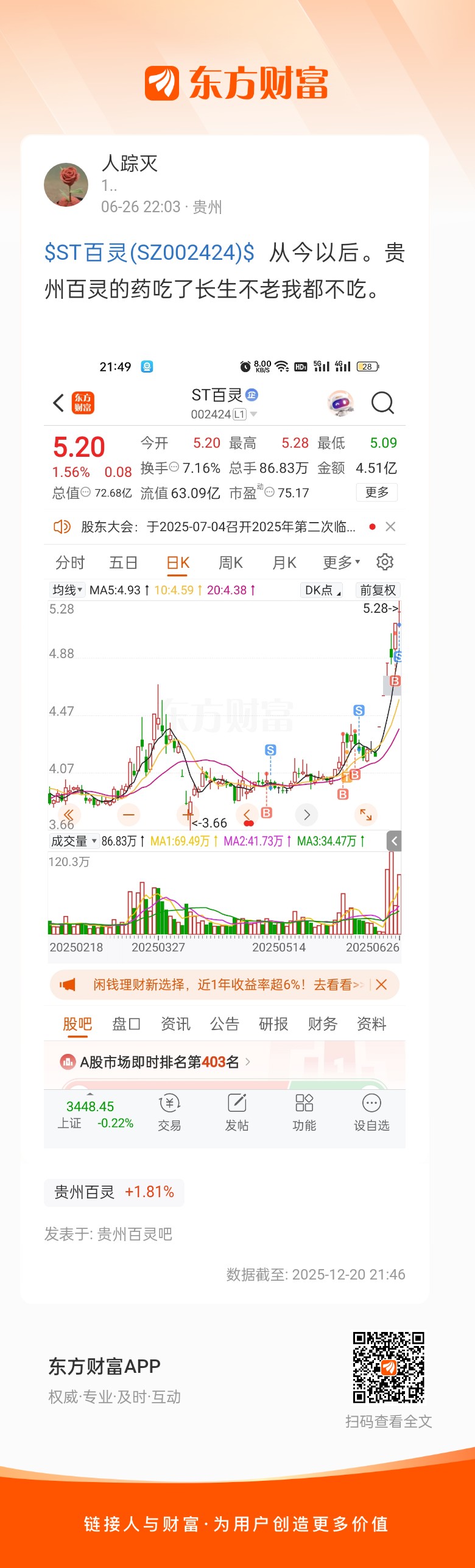 $ST百灵(SZ002424)$   从今以后。贵州百灵的药吃了长生不老我都不吃。还记得我说的话吗?果然有脾气的人可以免死