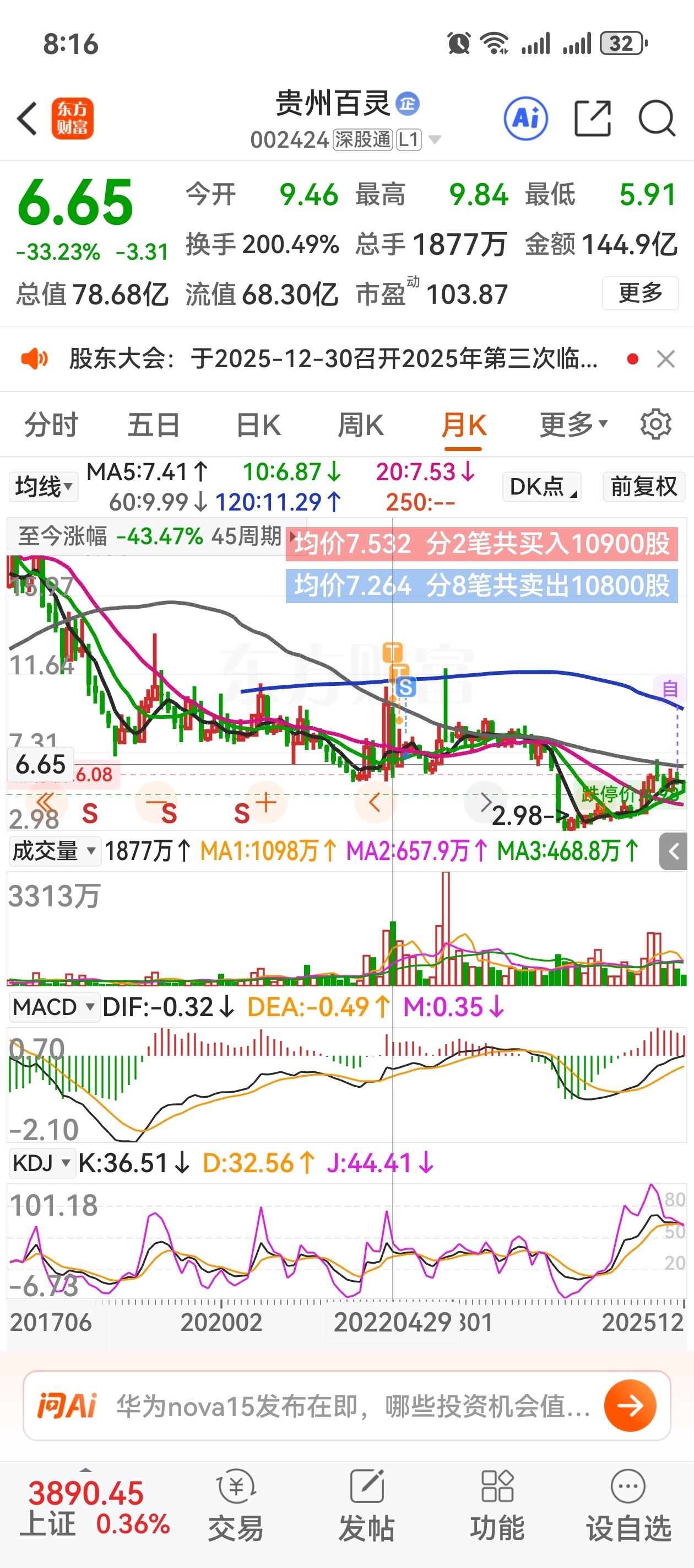 $贵州百灵(SZ002424)$ 7.532的本,这小屁孩,真会玩骗人的游戏。