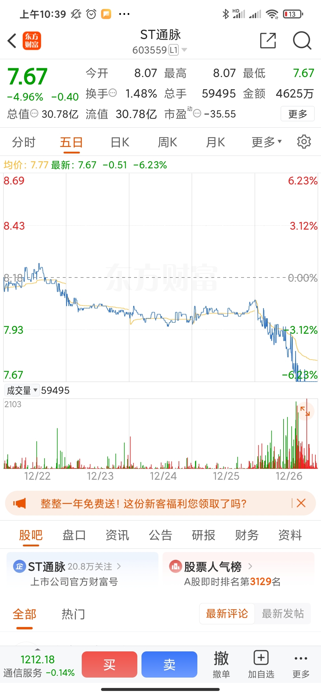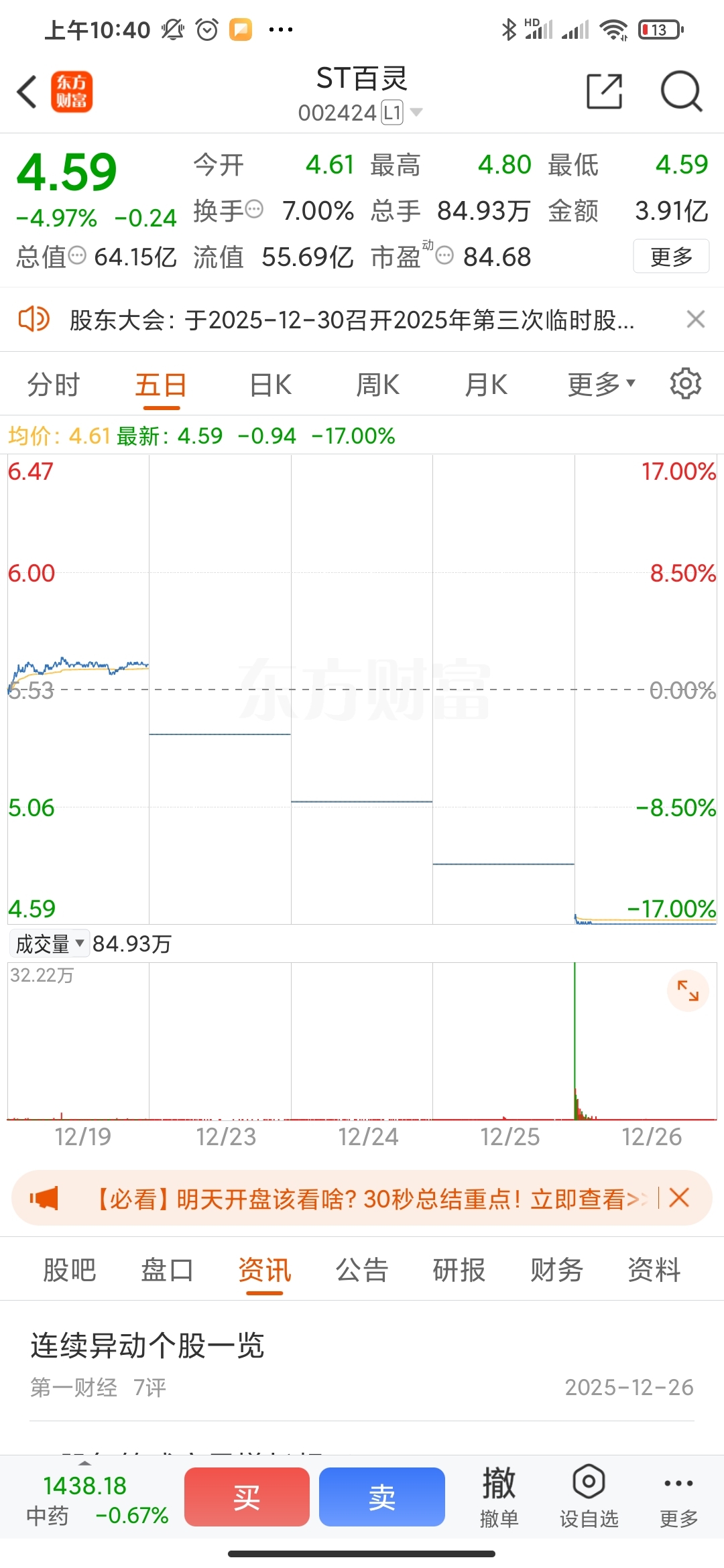 $ST百灵(SZ002424)$ $ST通脉(SH603559)$ 看多百灵看空通脉