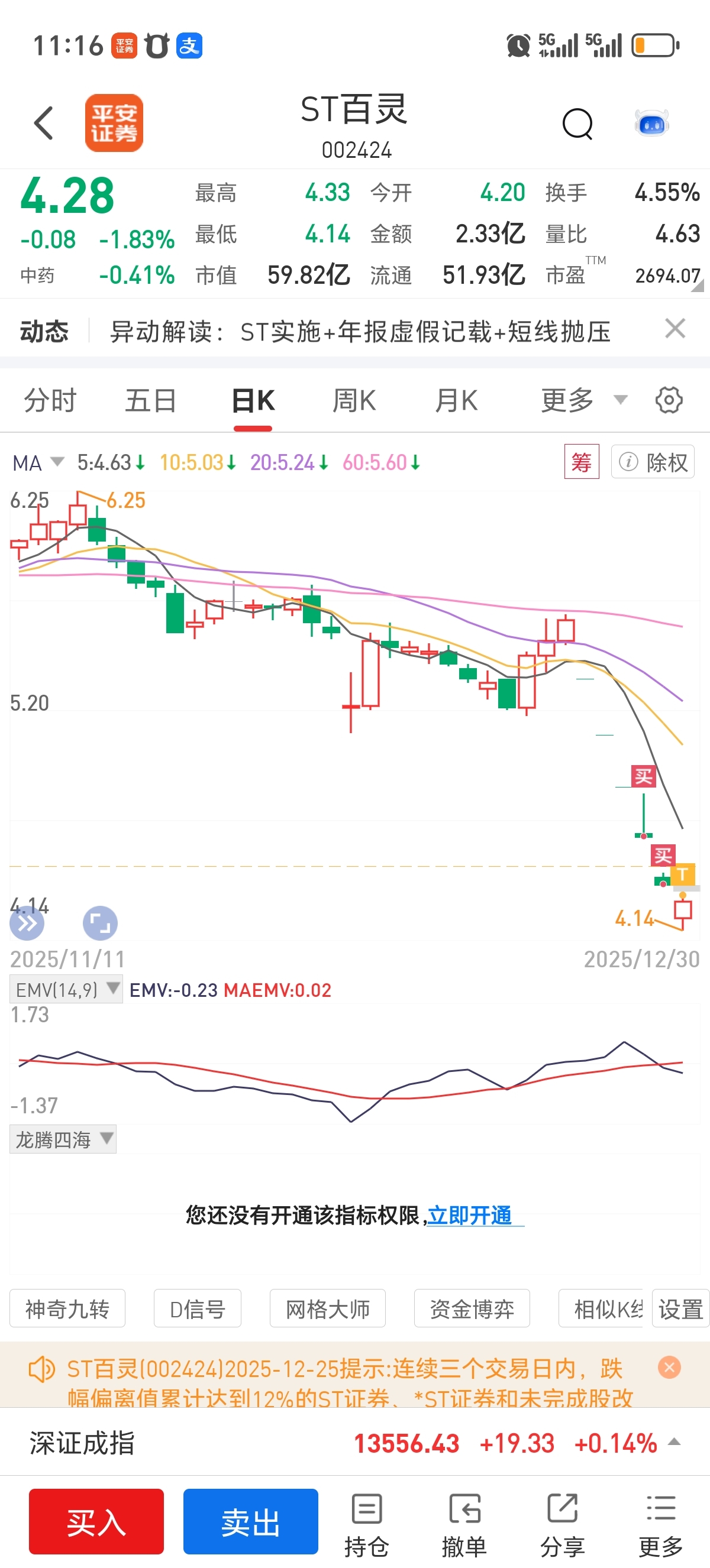 $ST百灵(SZ002424)$ 天天买,就不信你不到底