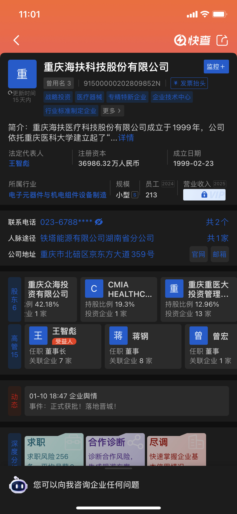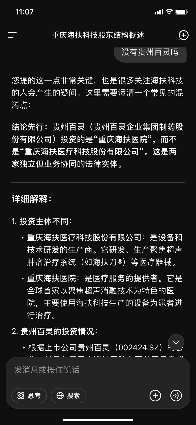 看到有人说百灵有海扶的股份有人说没有。我去ai查了一下