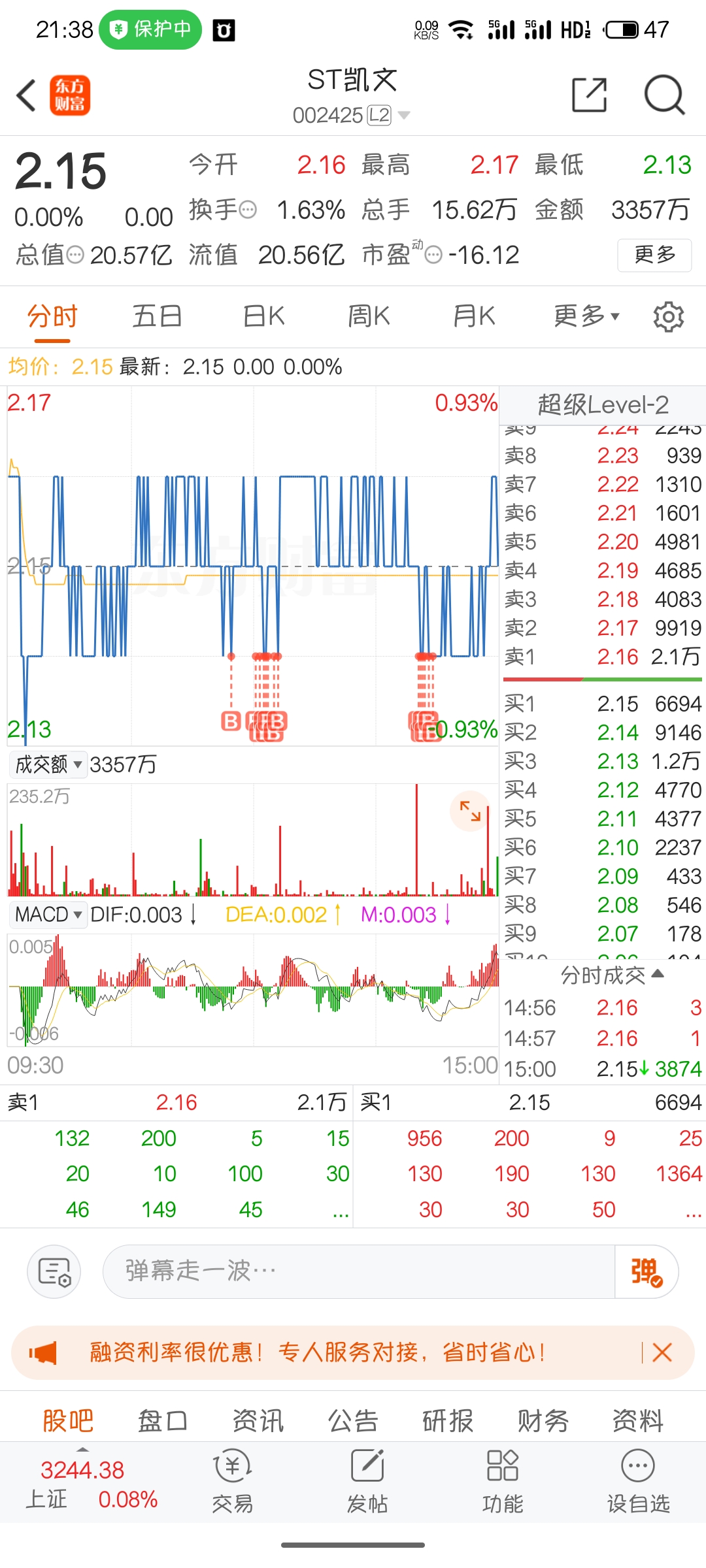 $ST凯文(SZ002425)$ 买的又不多,也就一千多手,是多不想让我吃点。