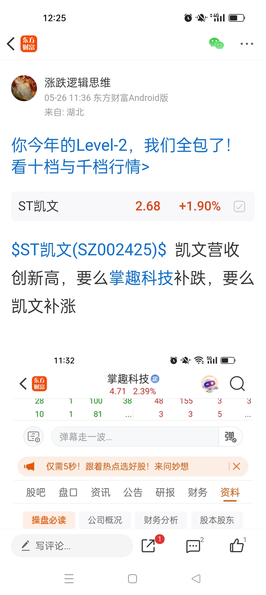 $ST凯文(SZ002425)$ 多天前就发帖,不管凯文,我就盯着掌趣科技,凯文还会补涨