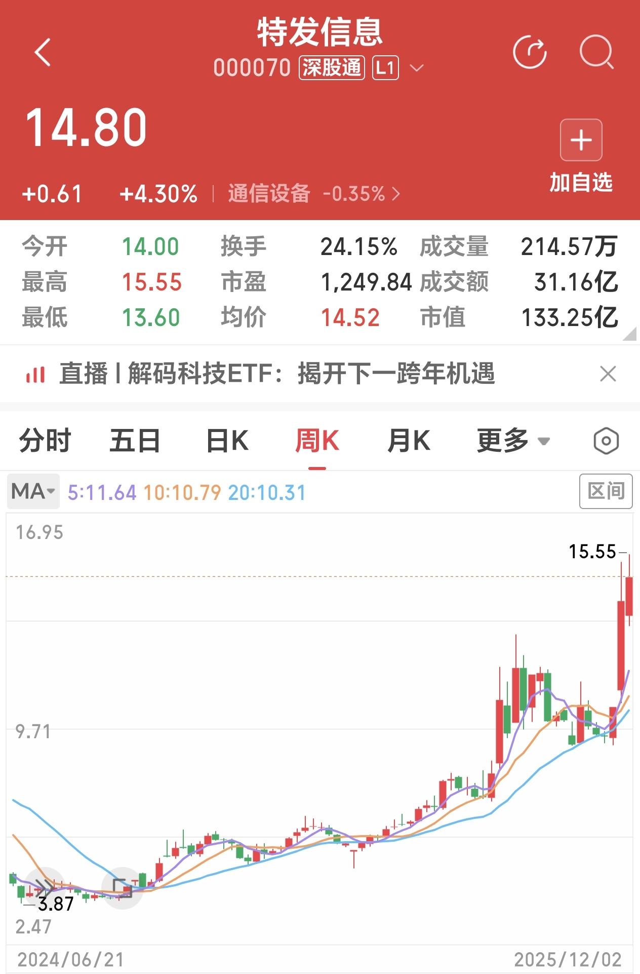 ST特信:去年最低3.8元,7月7.5元摘帽已经翻倍,昨天15.5元再翻倍!
