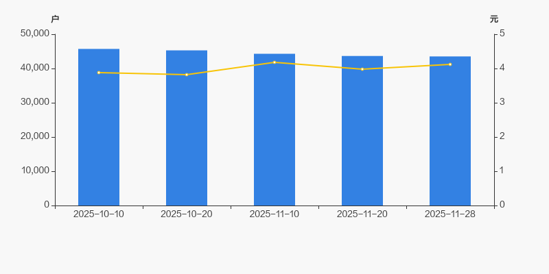 2025年10月10日至今,公司股东户数有所下降,区间跌幅为4.79%。2025年10月10日至2025年11月28日区间股价上涨6.19%。