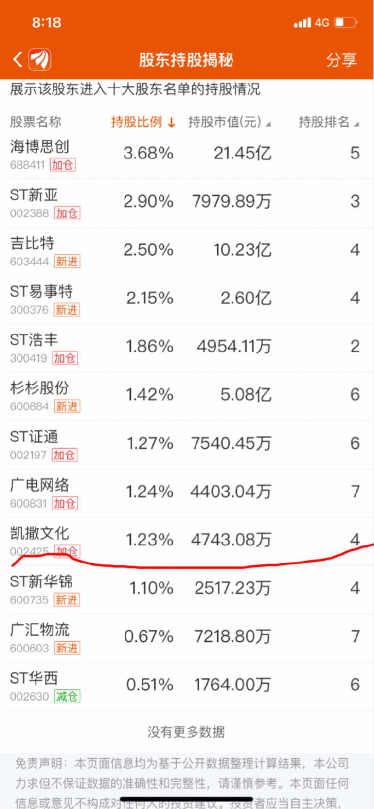 $凯撒文化(SZ002425)$ 显示加仓