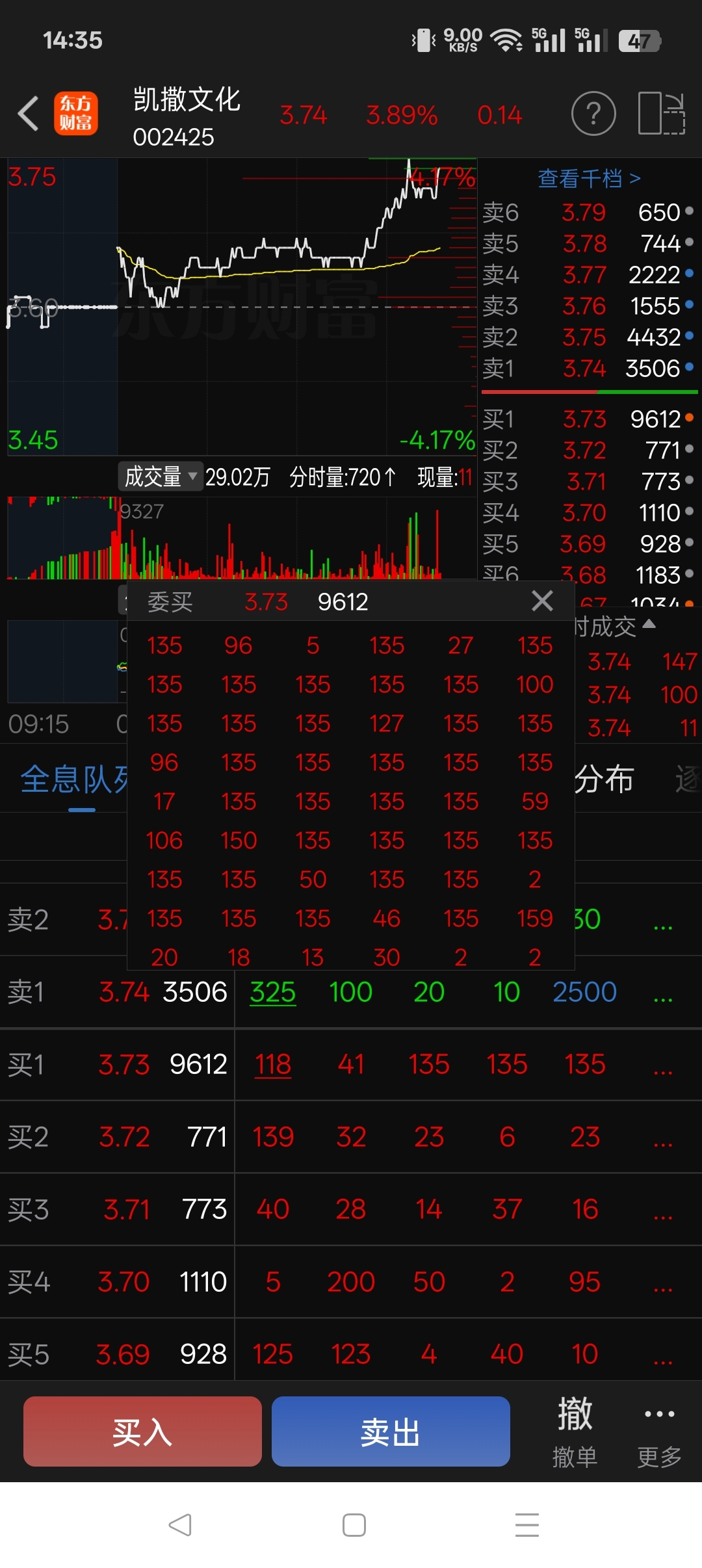 $凯撒文化(SZ002425)$ 量化来了!明日记得高点做T!!!