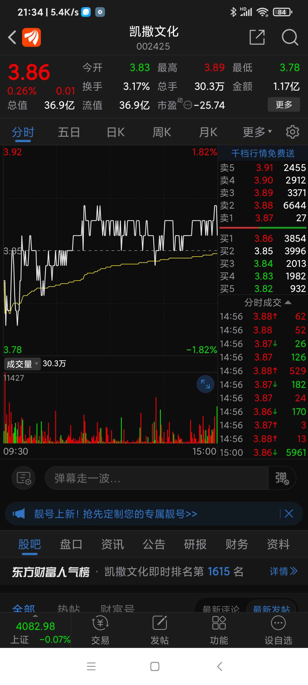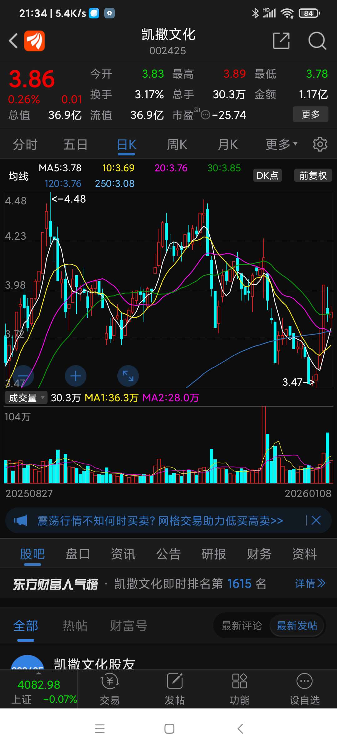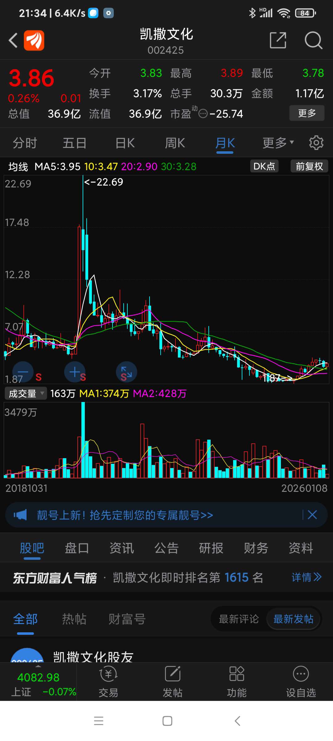 凯撒文化,周二拉涨停板,周三竟然低开低走,为何?25年12月11刚刚取消ST帽子,难道像亿晶光电般诱多。