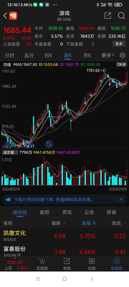 本周游戏板块周收盘,创25年以来的新高,这是一个比天上掉馅饼还动听的好消息,此刻