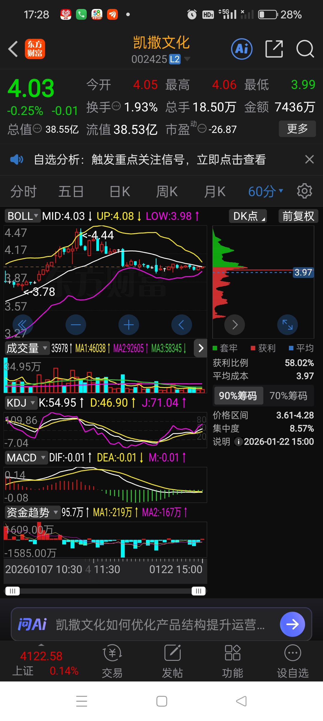 $凯撒文化(SZ002425)$ 明天涨停的概率是百分之九十九