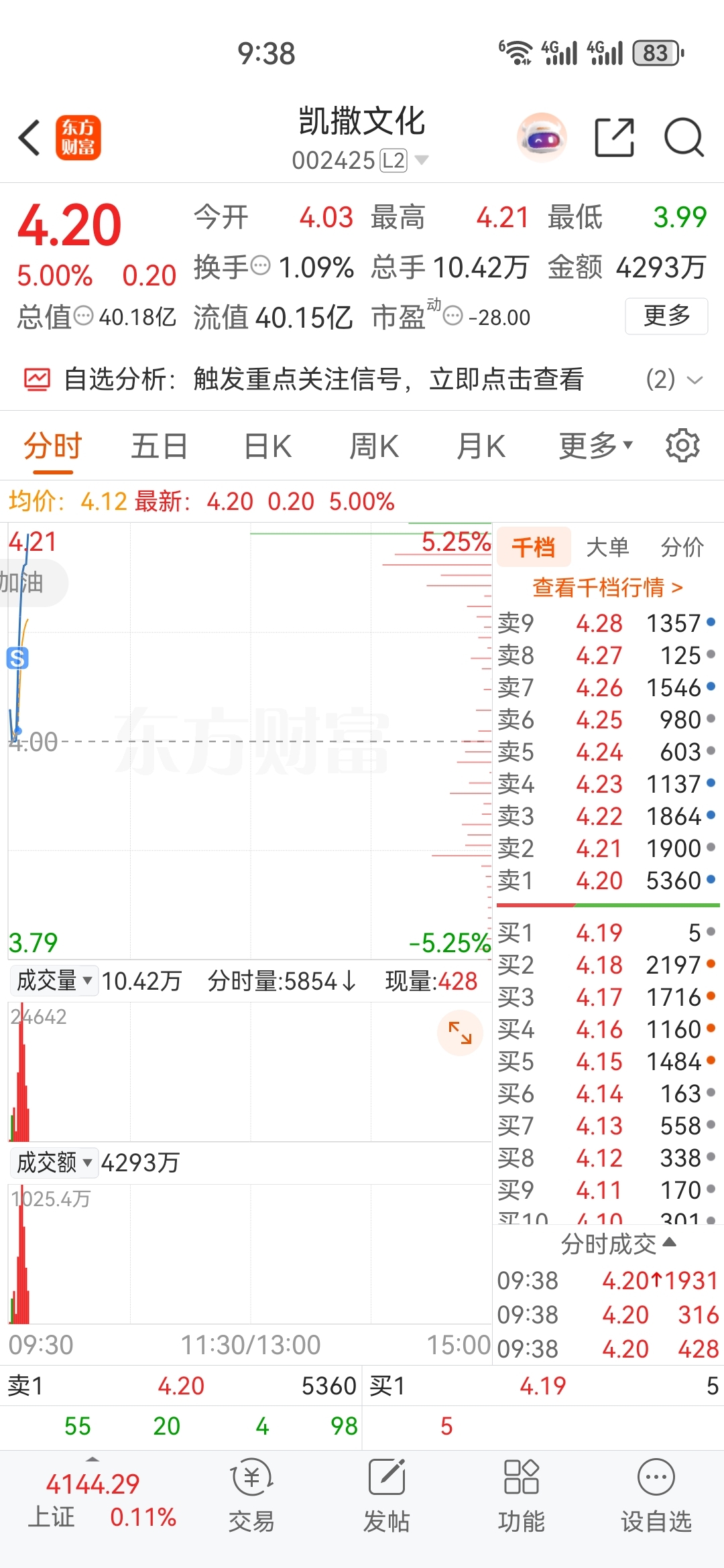 $凯撒文化(SZ002425)$ 果然是盯着我
