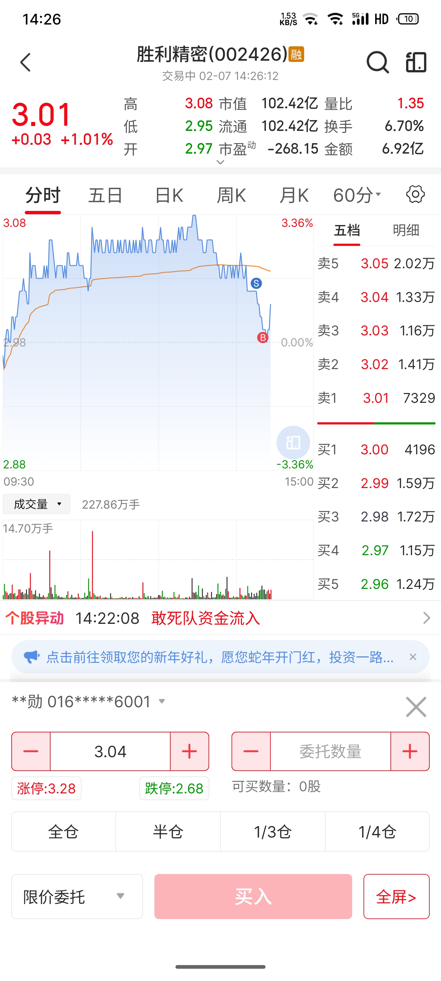 $胜利精密(SZ002426)$ 终于给我一个不胆战心惊做T的机会!