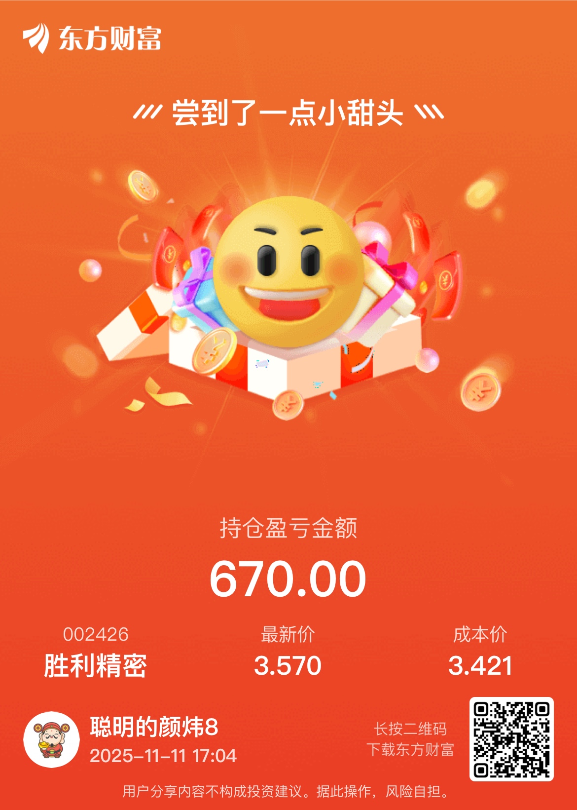 $胜利精密(SZ002426)$ 感觉不错拿你几天