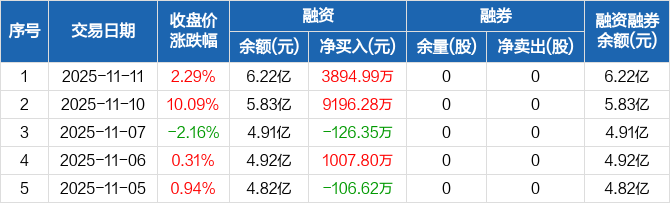 胜利精密:融资净买入3894.99万元,融资余额6.22亿元(11-11)