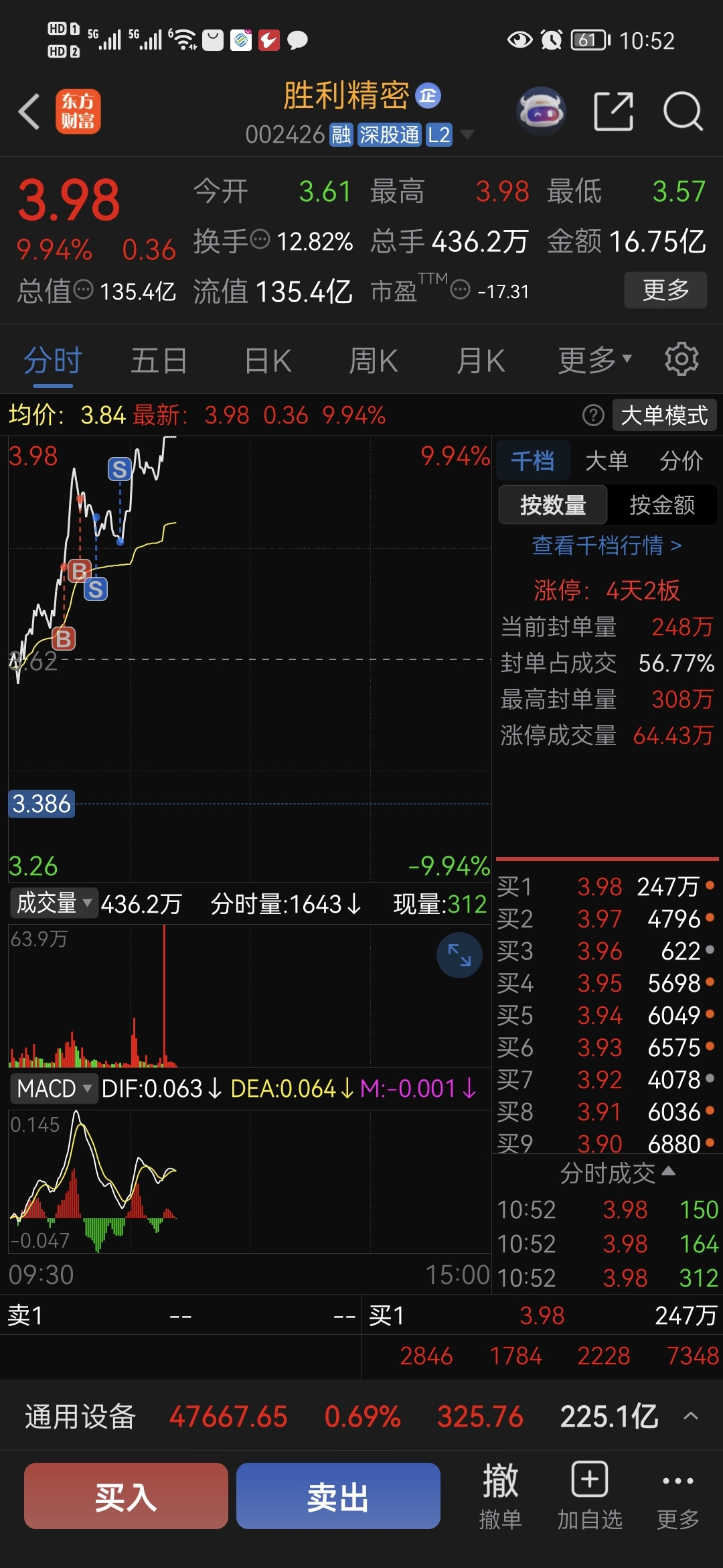 $胜利精密(SZ002426)$ 骗了我一半筹码,蛋