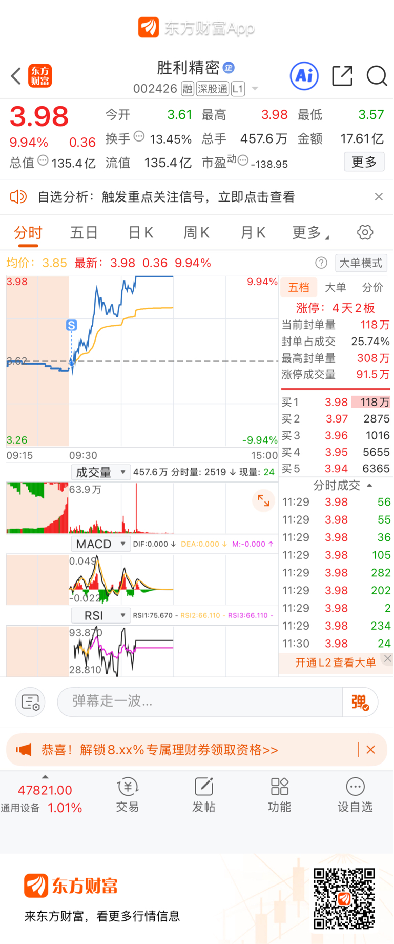 $胜利精密(SZ002426)$