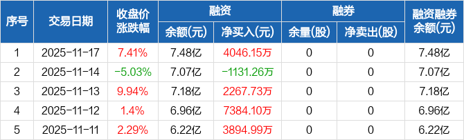 胜利精密:融资余额7.48亿元,创历史新高(11-17)
