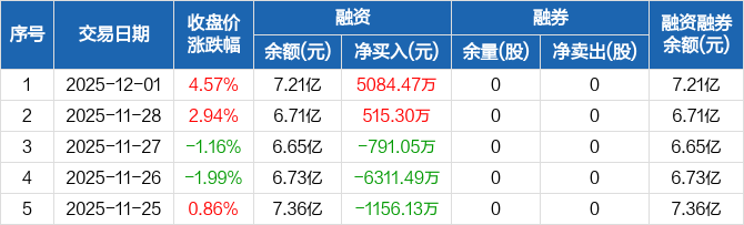 胜利精密:融资净买入5084.47万元,融资余额7.21亿元(12-01)