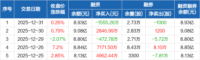 胜利精密:融资净偿还1555.26万元,融资余额8.93亿元(12-31)