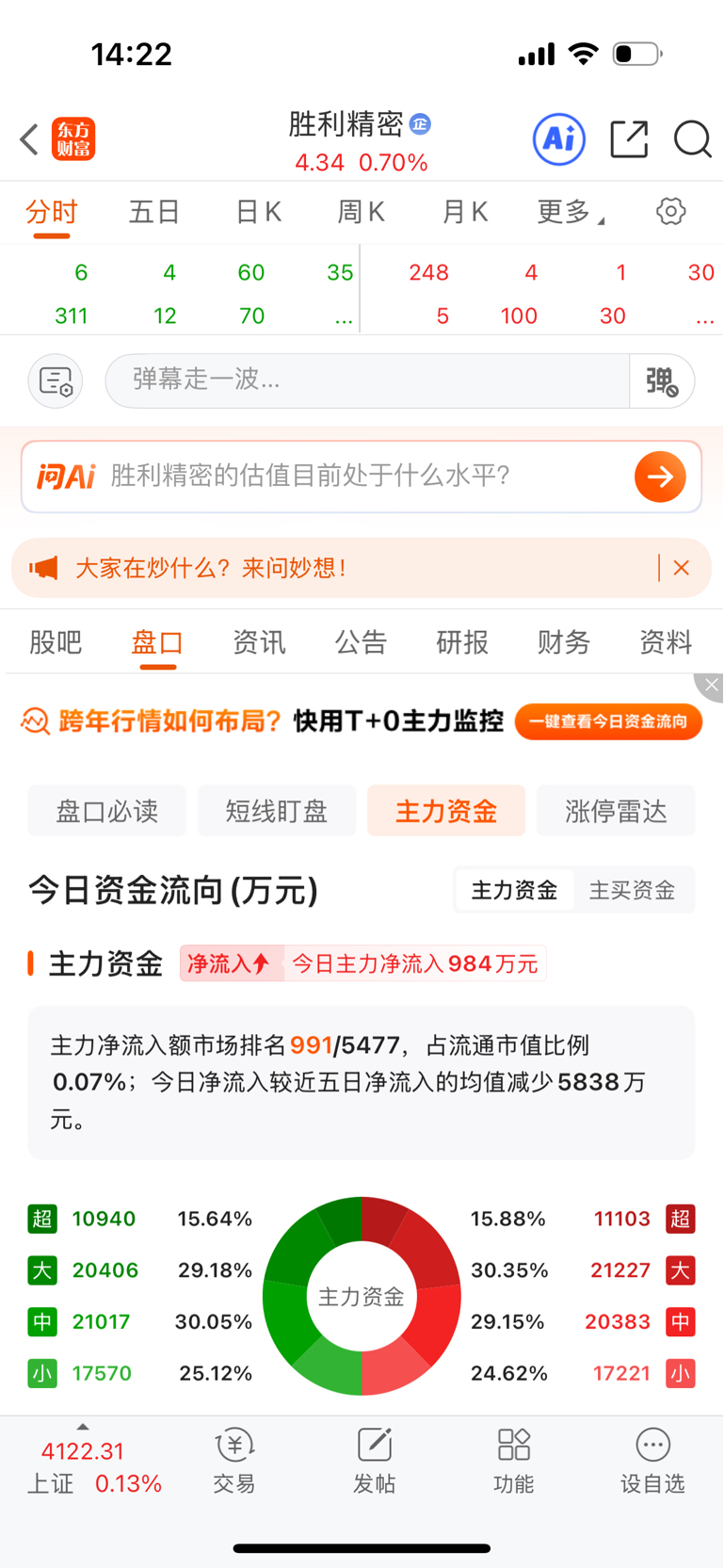 $胜利精密(SZ002426)$ 今天可以啊流入1千万进来