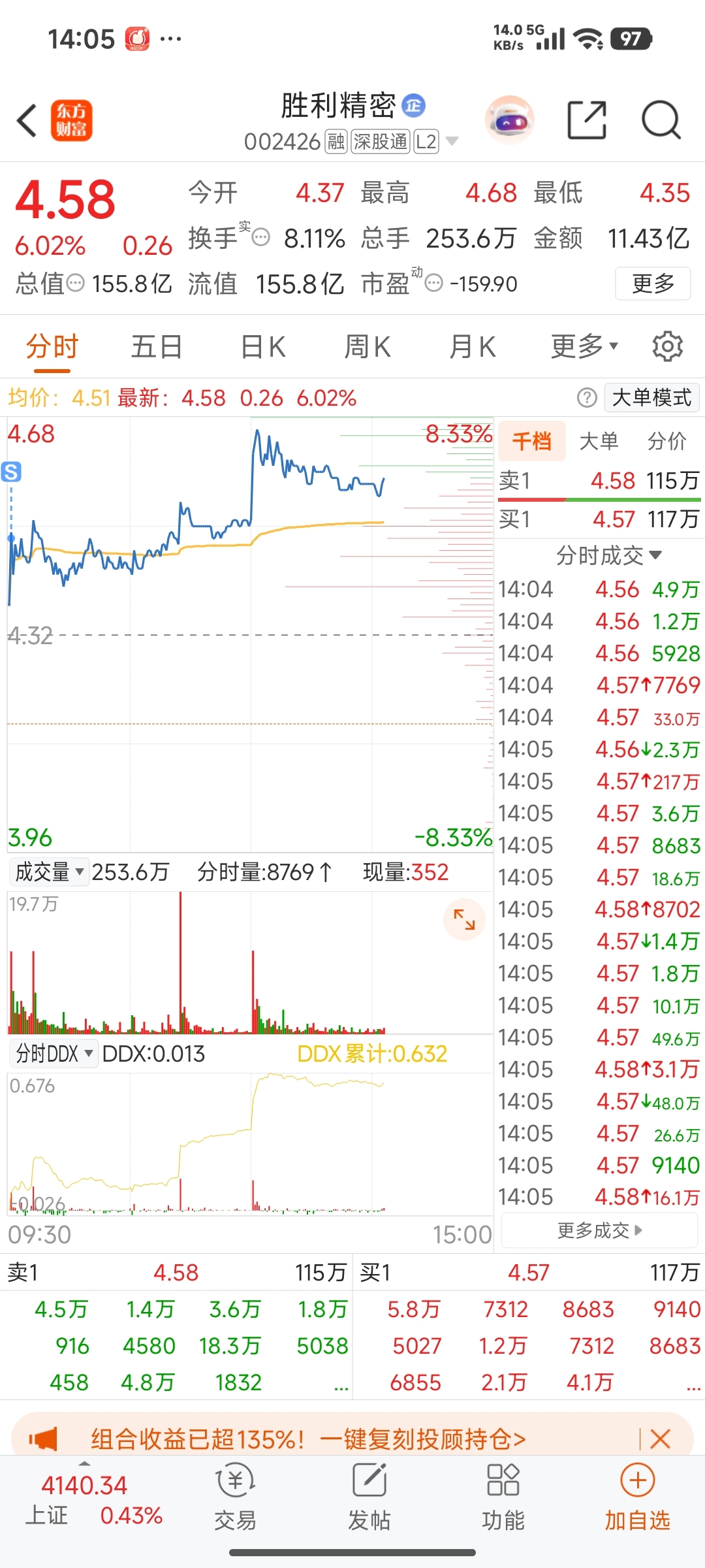 $胜利精密(SZ002426)$ 今儿个不下来了么?卖飞一半
