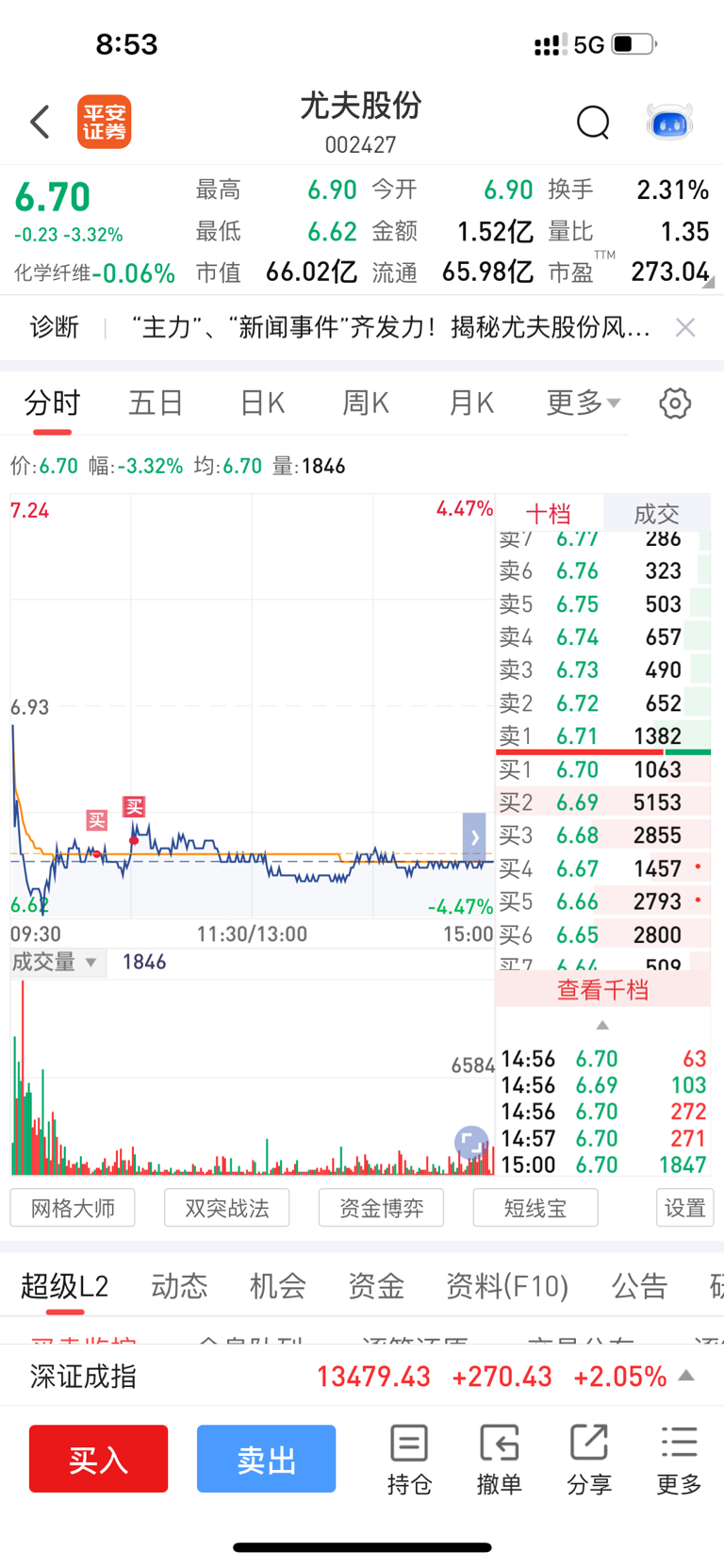 $尤夫股份(SZ002427)$ 6.71都会被套,我才不信这个邪了