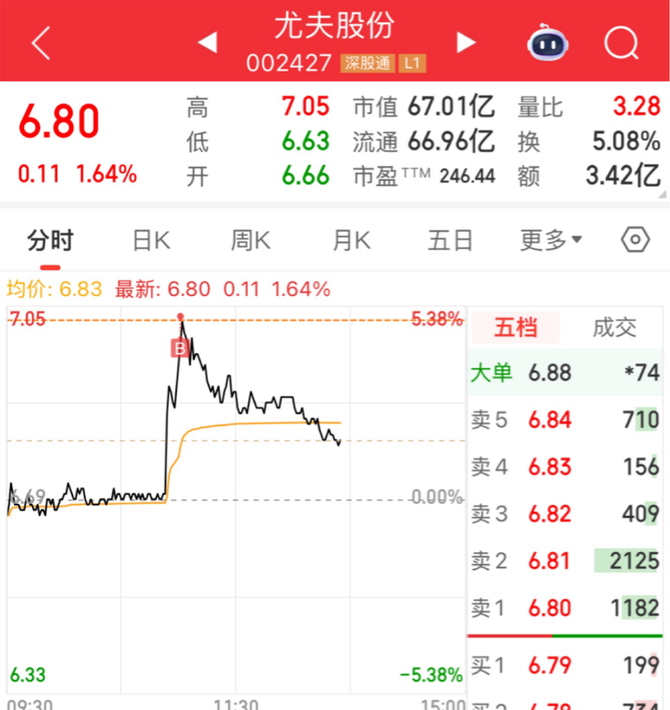 $尤夫股份(SZ002427)$