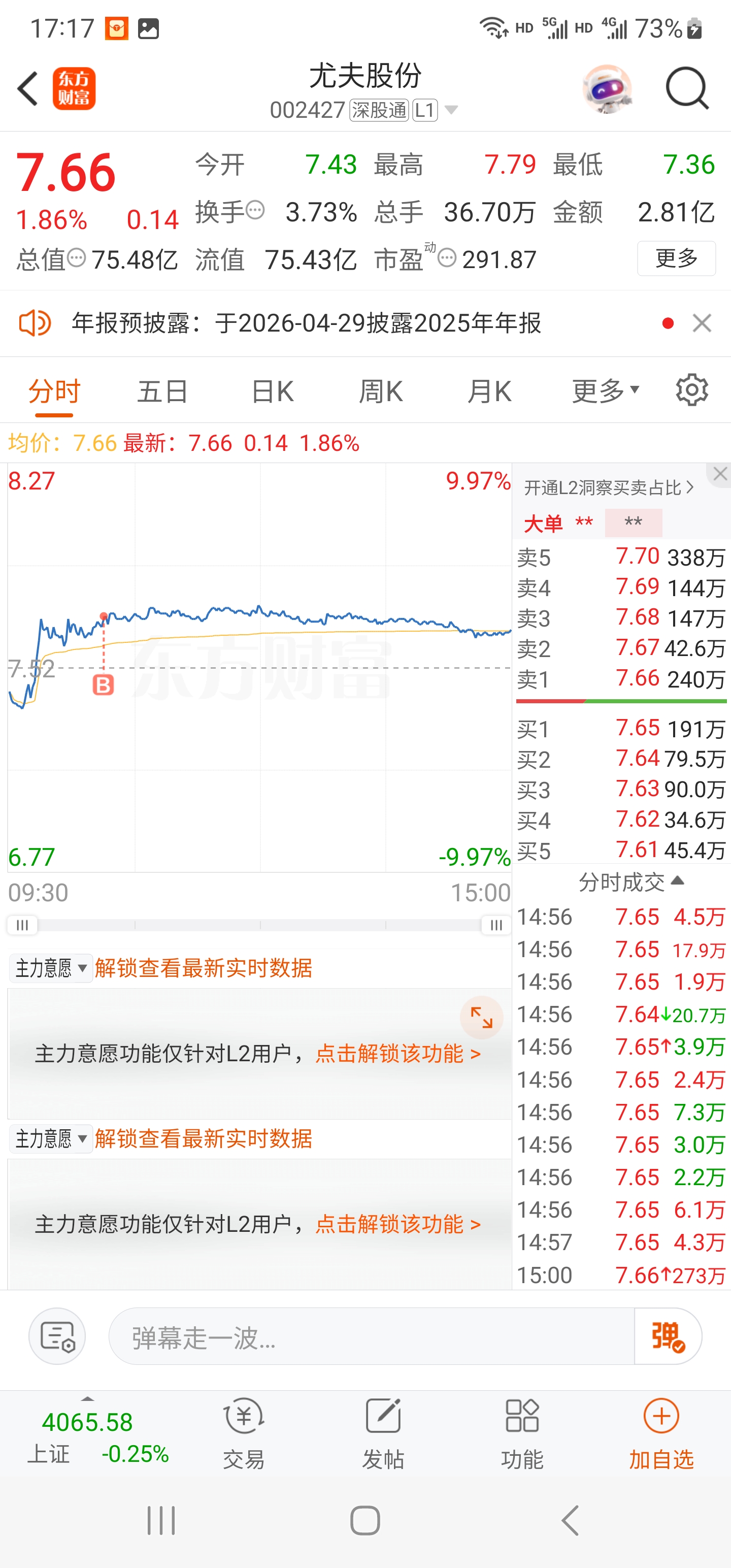 $尤夫股份(SZ002427)$ 做超短线,周一跑还是留