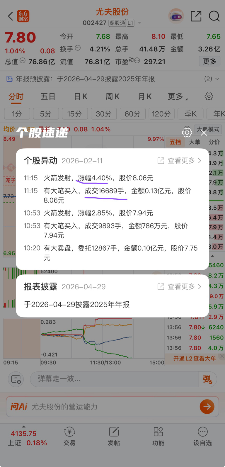 $尤夫股份(SZ002427)$ 明天也是这样急拉缓跌吗