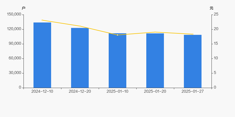 截至2025年1月27日,公司最新流通股本为6.53亿股。户均持有流通股数量由上期的5856股上升至6017股,户均流通市值11.02万元。