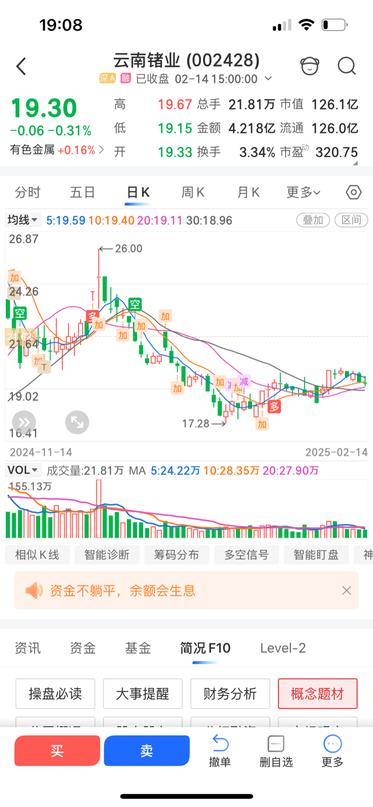 $云南锗业(SZ002428)$ 云南锗业,不知道那时是不是鬼迷心了才买了你。一路下跌,一路加仓想做T,每次都套着。现在心有余而力不足了。没有米加了。过年到现在不见你涨点,庄家睡着了,忘记这只股了?