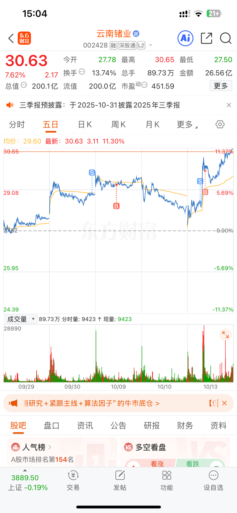 $云南锗业(SZ002428)$ 我是个大sb!气死了